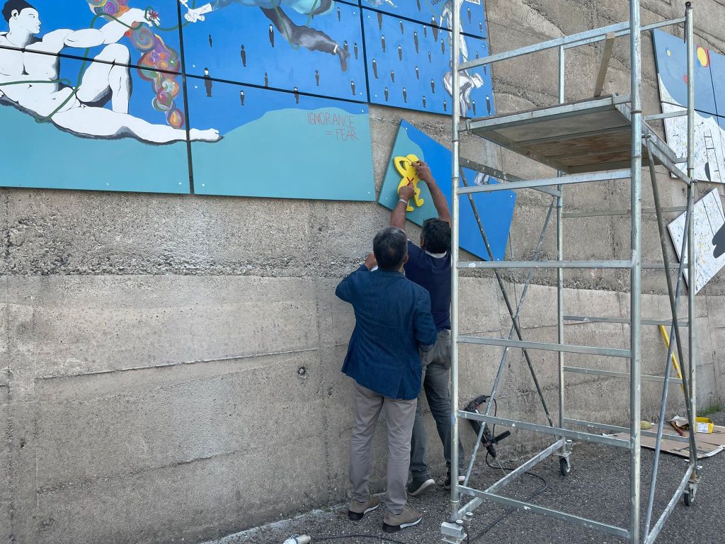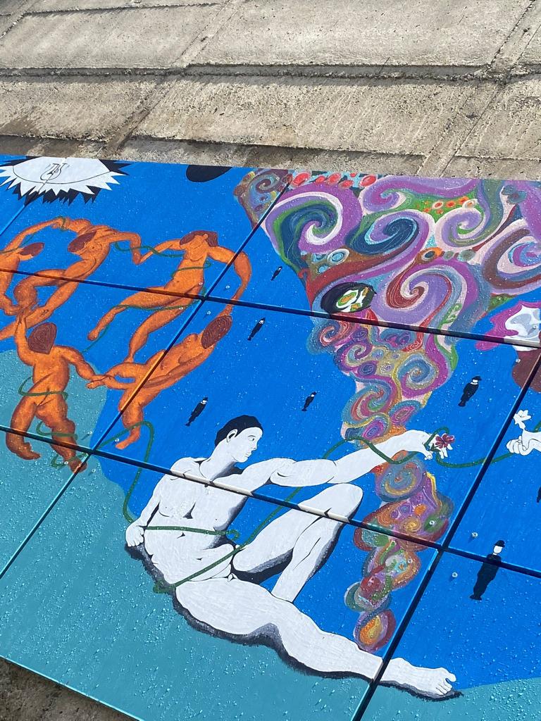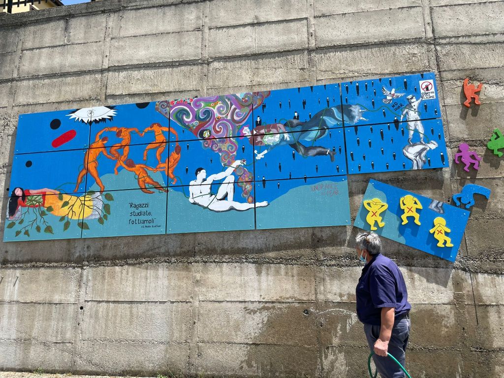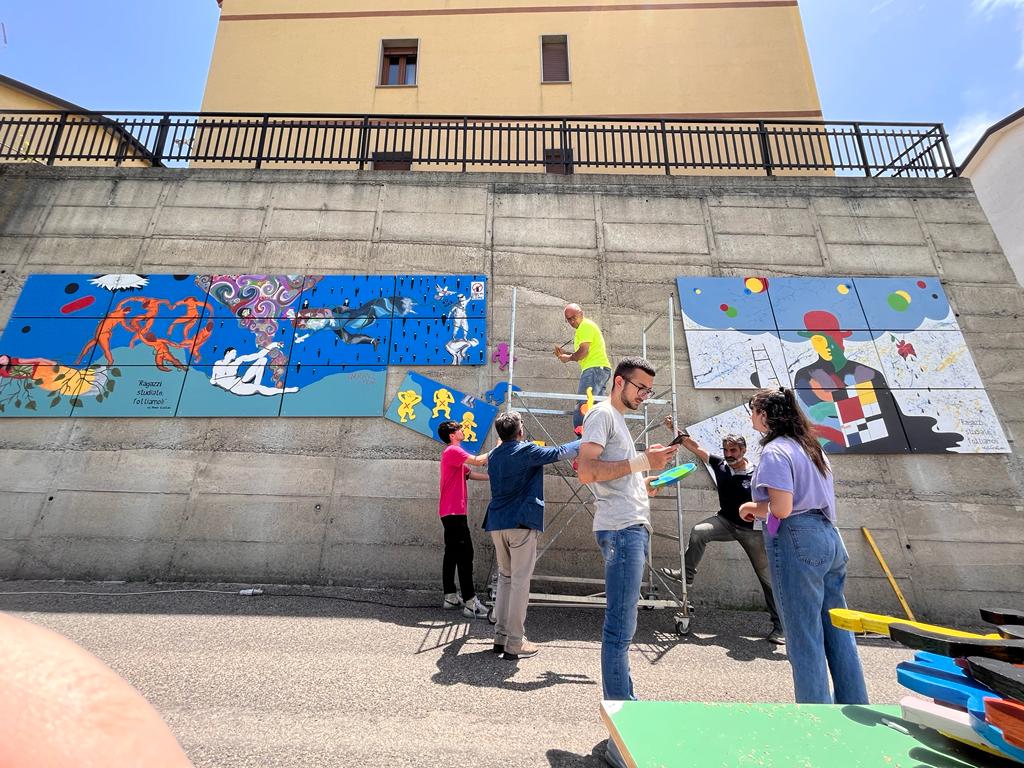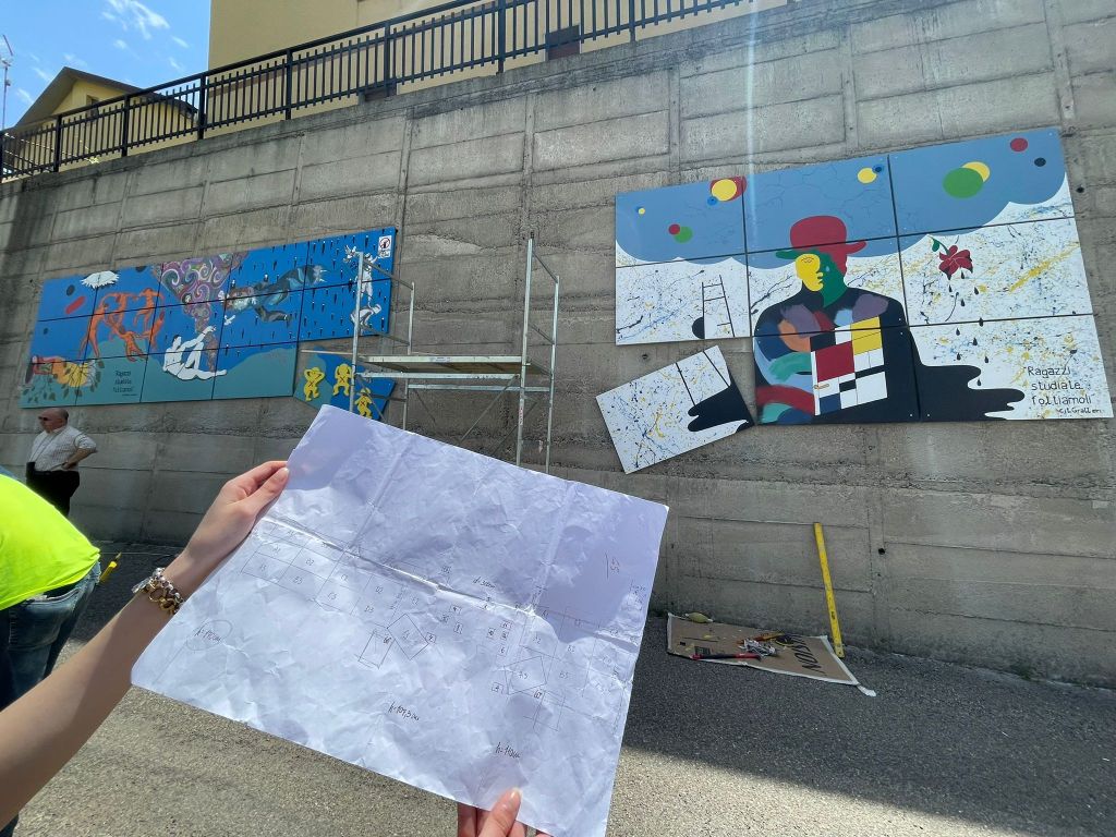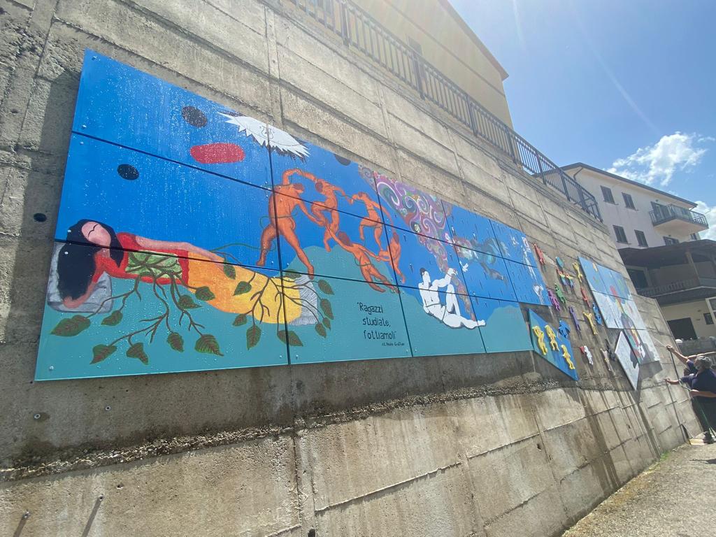 I giovani maturandi del Liceo Scientifico Julia città di Acri, in provincia di Cosenza, classi quinte sez. A e B hanno certo avuto in animo proprio questa idea, allorquando si sono messi al lavoro, magistralmente coadiuvati dal docente di Disegno e Storia dell’arte Prof. Francesco A. Ranaldi e dalla dirigenza del Liceo al fine di realizzare un lavoro artistico corale e collettivo per i giovani artisti, arricchito da considerazioni culturali maturate durante l’intero percorso scolastico, denominato 22 ART PROJECT per un’opera pittorica titolata INTORNO e FLOW realizzata su base lignea che ha trovato spazio lungo il piazzale del liceo.