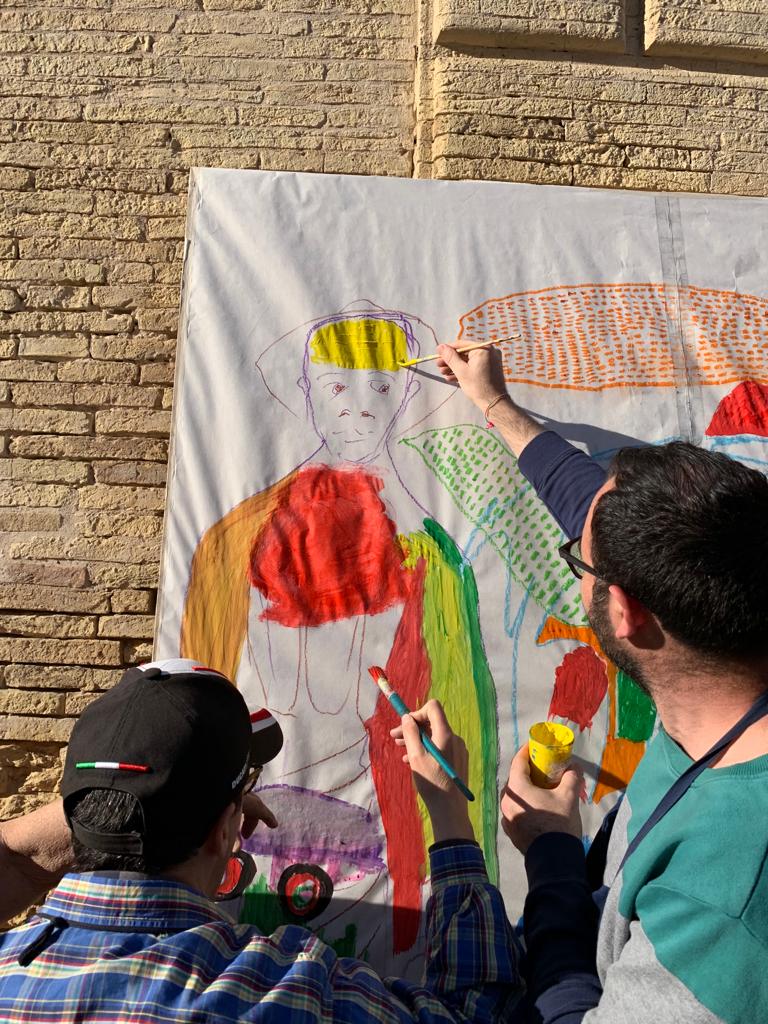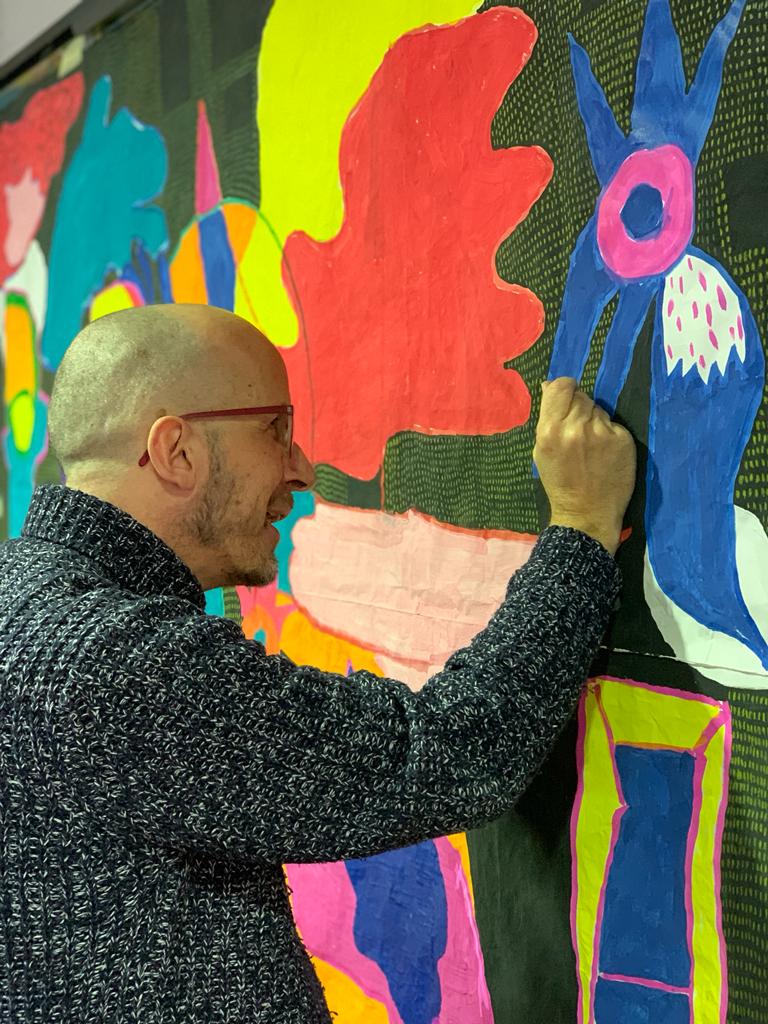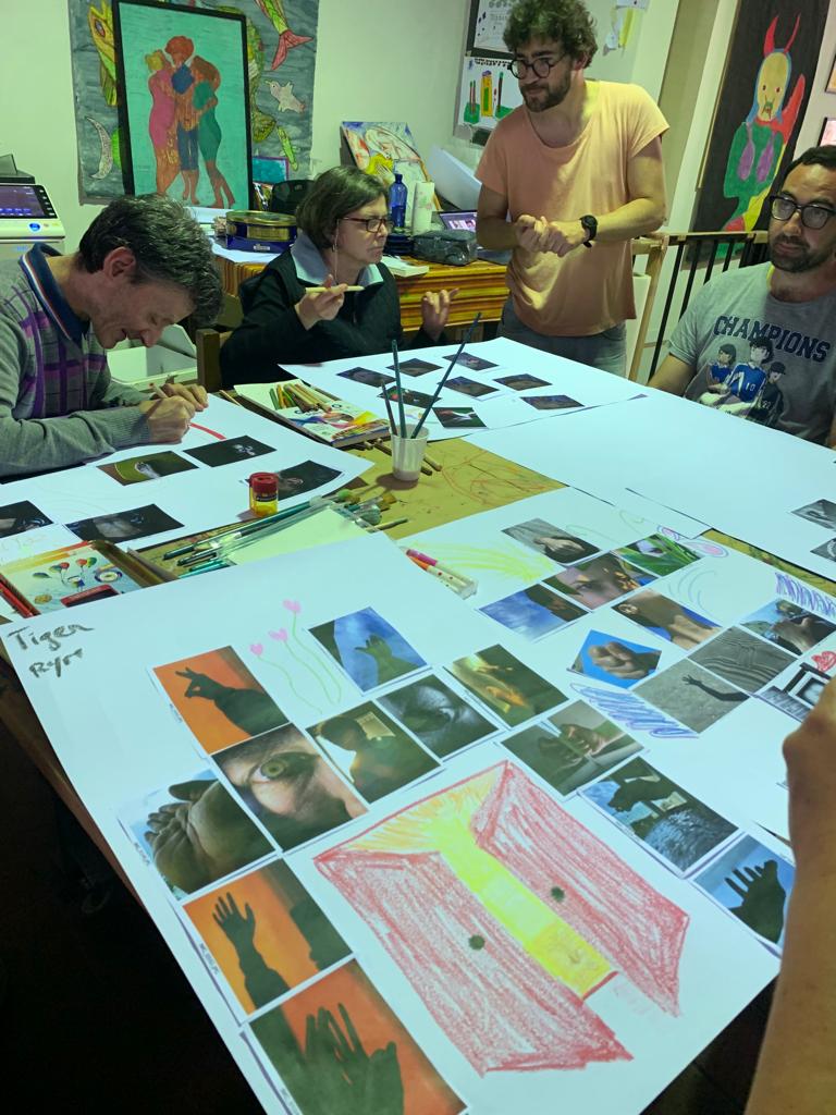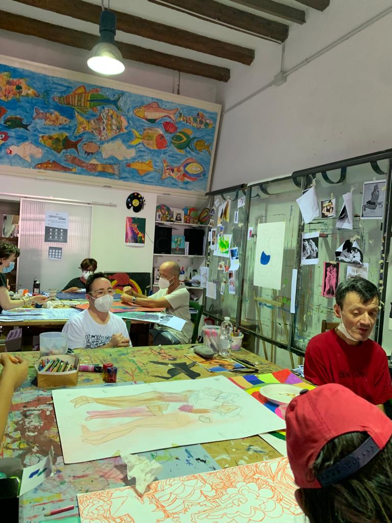 Nel momento in cui l’artista si sente pronto per lavorare con il gruppo allora le modalità sono diverse: spesso arrivano commissioni sulle quali lavorare (grafiche, quadri, loghi e altro) ma spesso si lavora a progetto: o indagando in gruppo un tema proposto da me che mi sembra funzionale a quel momento o più spesso indagando una richiesta degli artisti e delle artiste.
